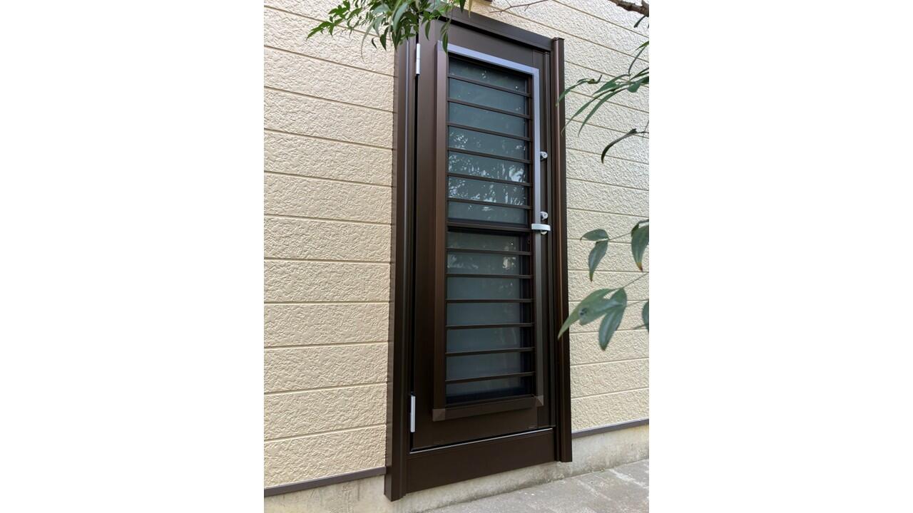 既存の枠をそのままにドアを交換するカバー工法で、最新式の通風ドアに交換しました。