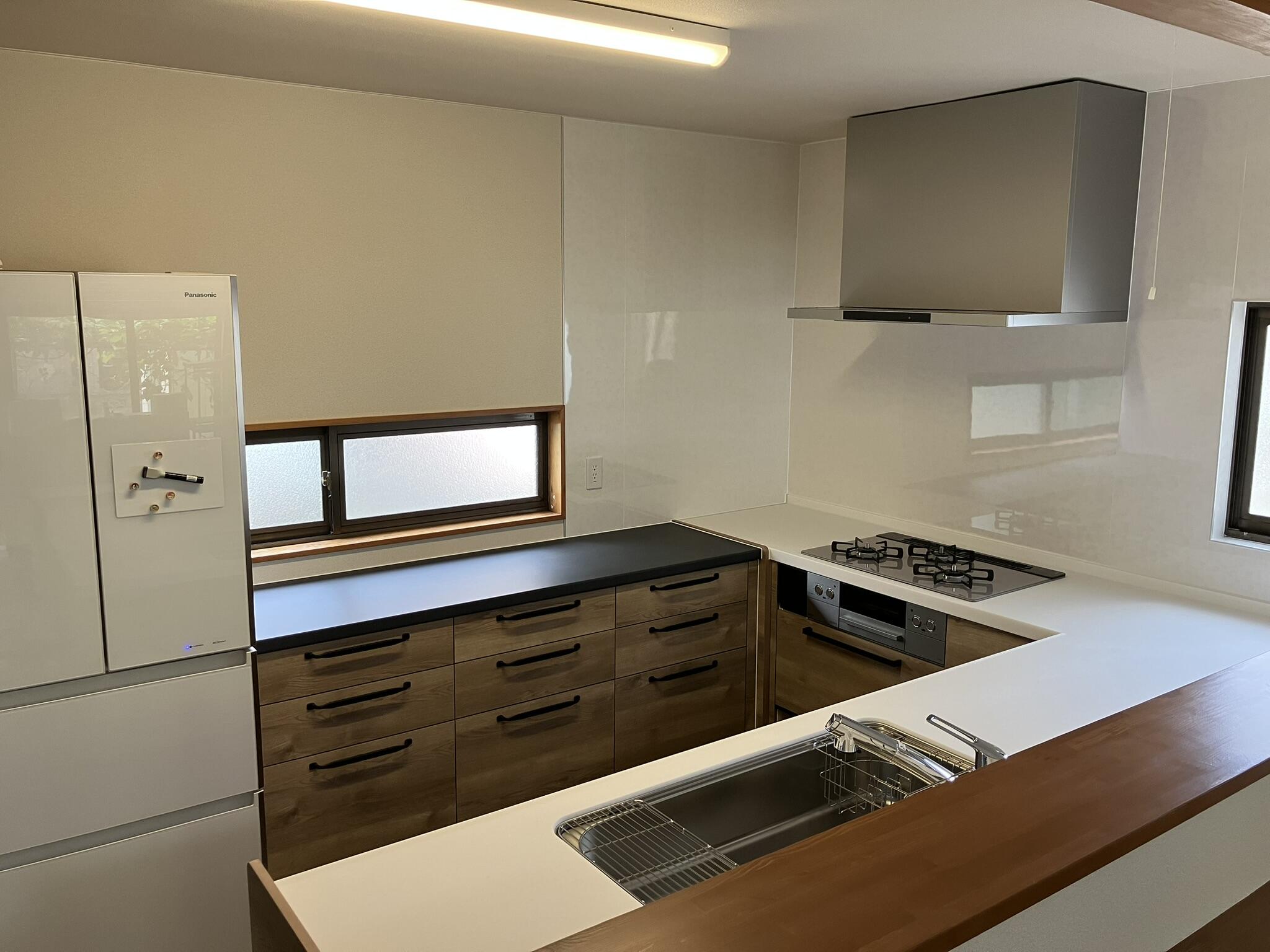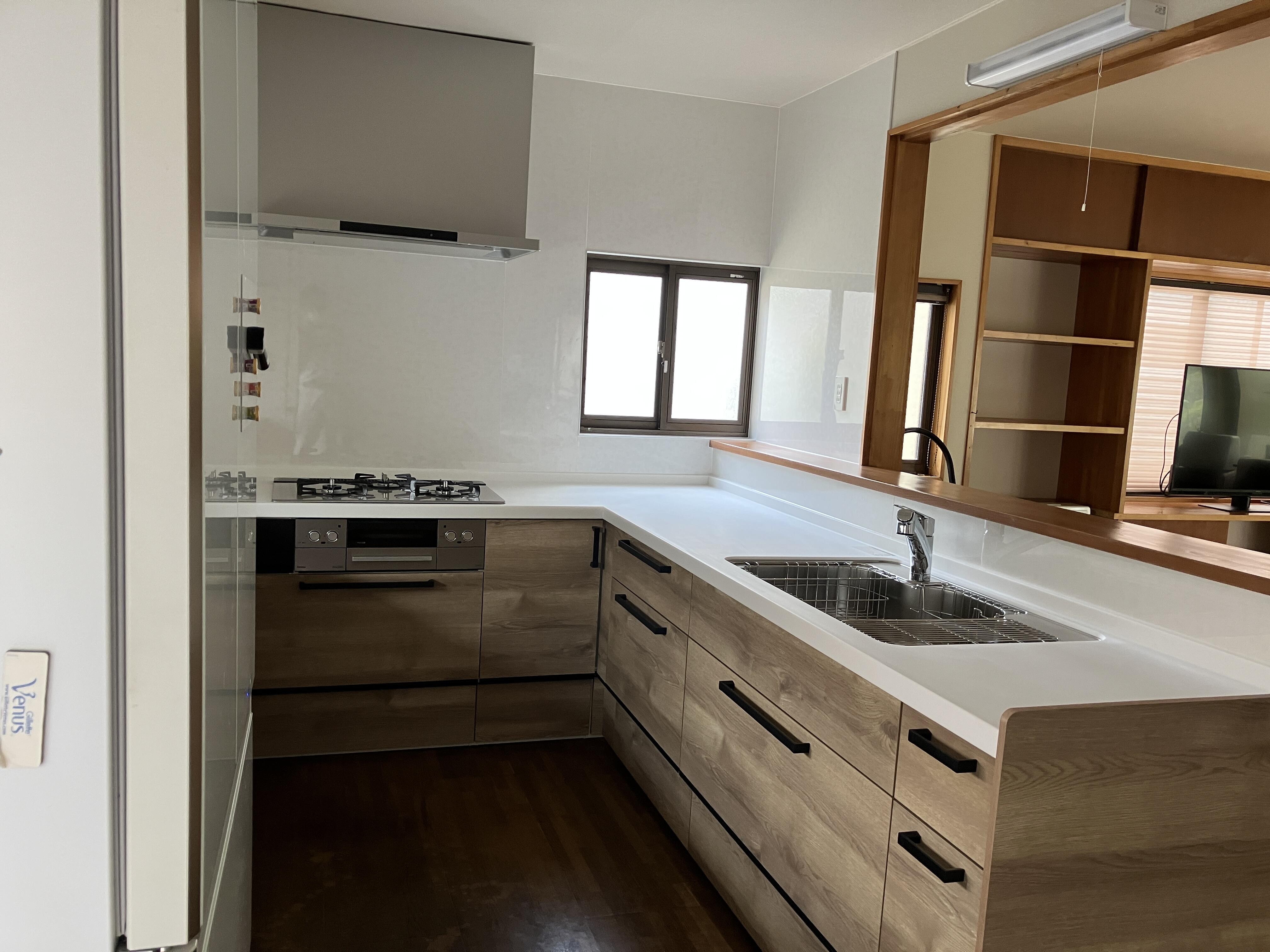 今までのキッチンの動線を活かす為にL型キッチンのカウンターは特注サイズとしました。