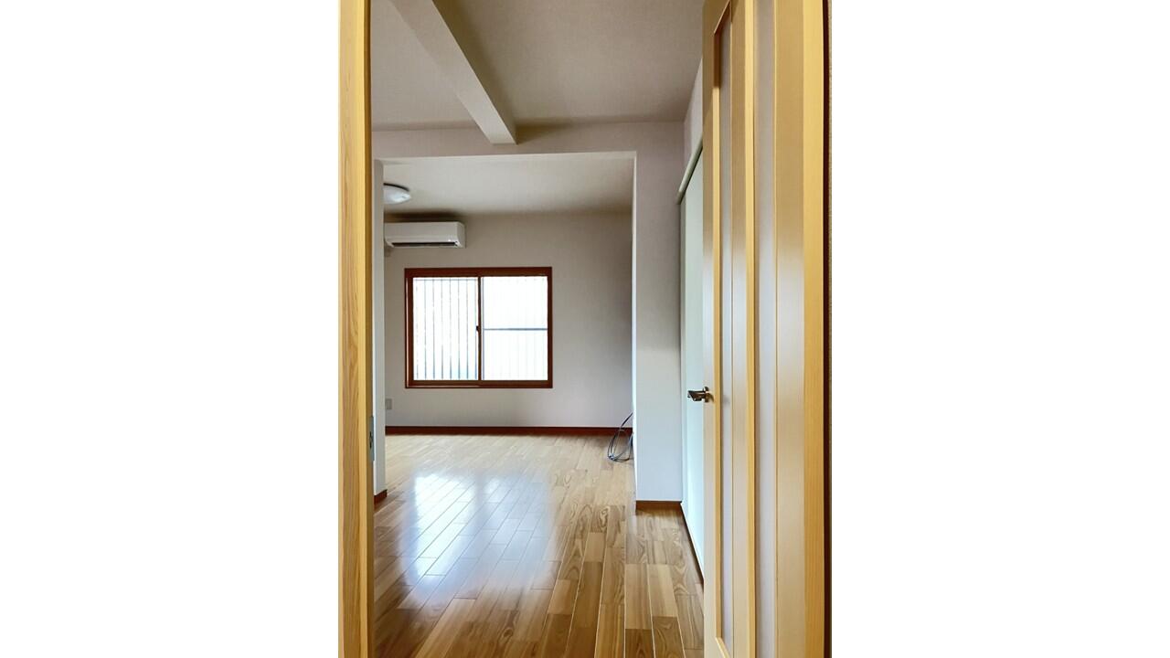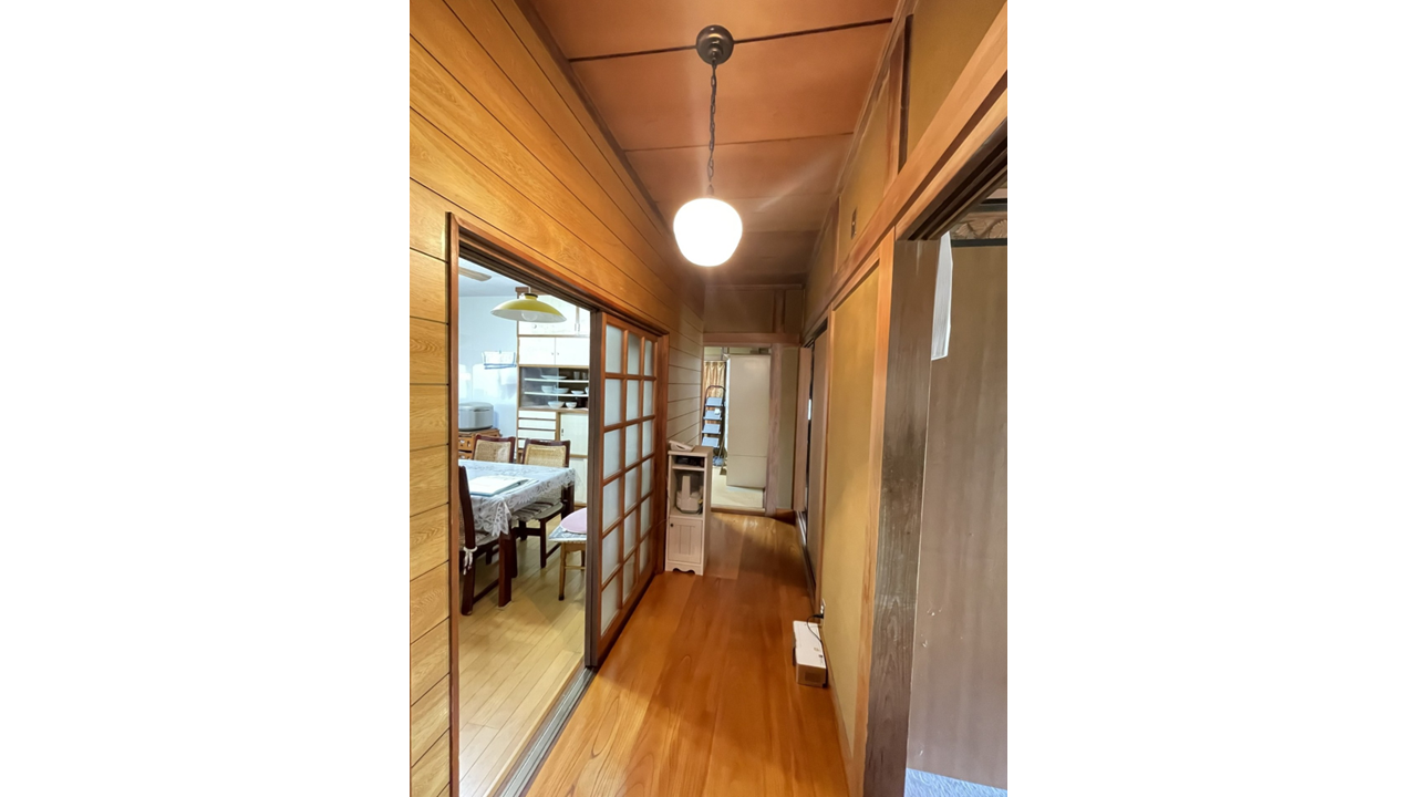 廊下の間仕切り壁を撤去しリビングダイニングキッチンにしました。