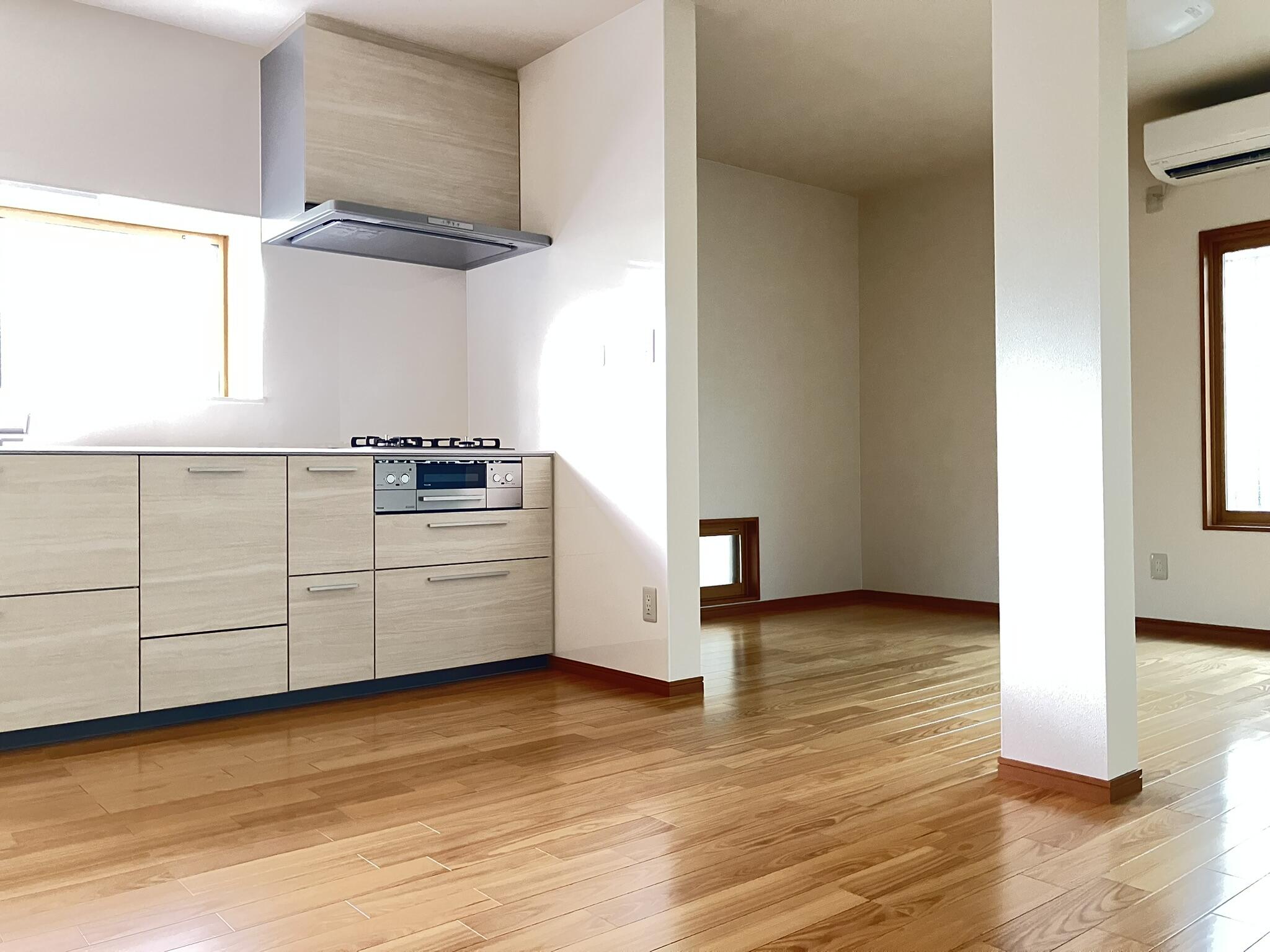 キッチンと和室の壁の一部を撤去してリビングダイニングキッチンにしました。